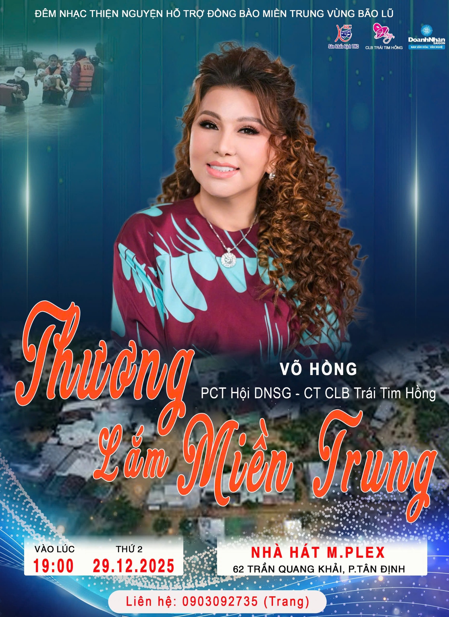 Dù nước đã rút, nhưng những vết thương về vật chất và tinh thần vẫn còn đó. Với mong muốn không để ai bị bỏ lại phía sau và tiếp nối nguồn lực hỗ trợ bà con ổn định cuộc sống, Hội DNSG kết hợp cùng CLB Trái Tim Hồng, Sân khấu TKC trân trọng tổ chức đêm nhạc kịch đặc biệt: THƯƠNG LẮM MIỀN TRUNG.