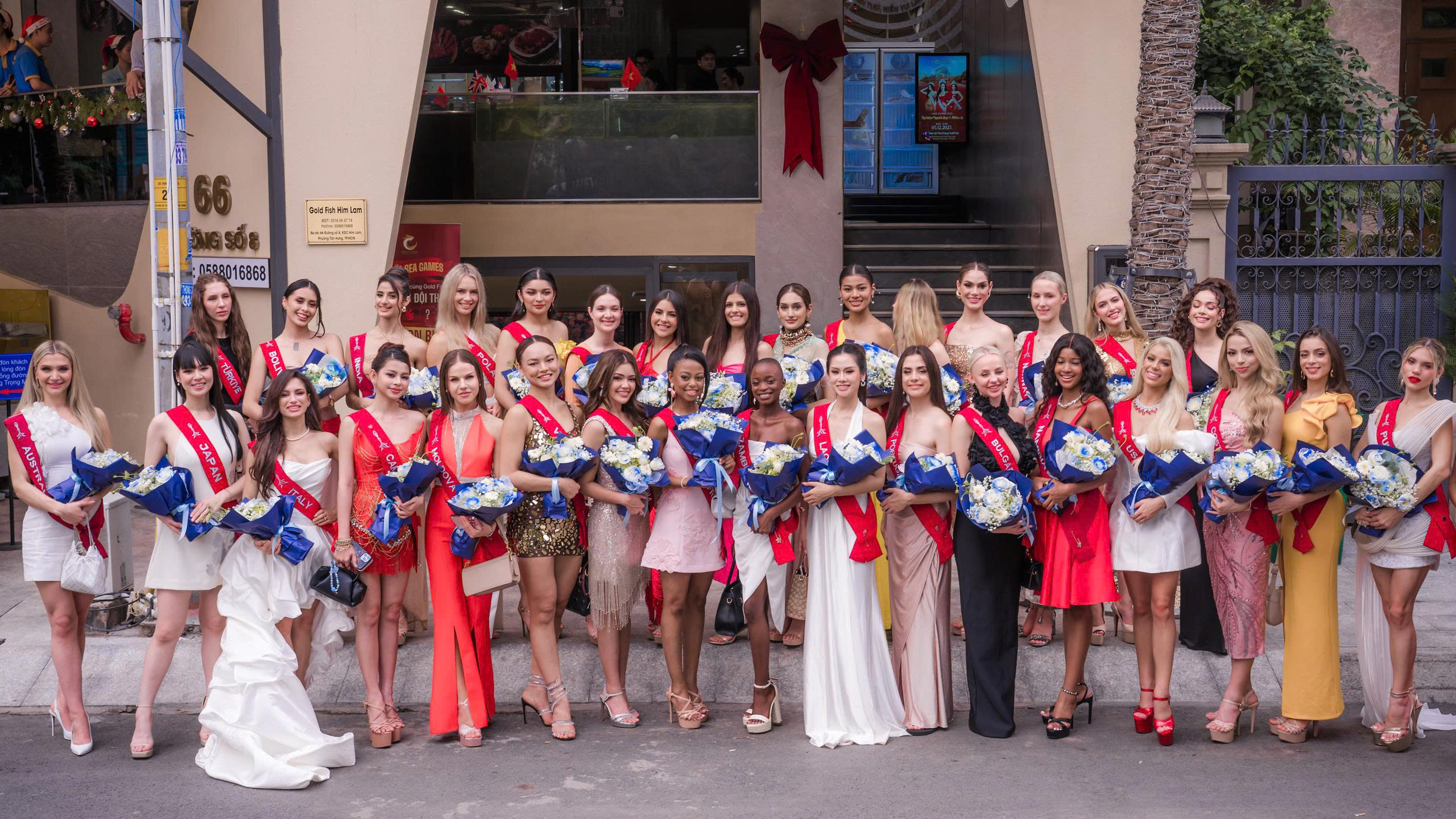 Ngày 5/12/2025, tại nhà hàng Goldfish số 66, đường số 8, khu dân cư Himlam, Tp. Hồ Chí Minh. 42 người đẹp quốc tế đến từ 39 quốc gia của Miss Charm 2025 đã có một buổi tiệc đặc biệt với chủ đề “Người đẹp và Biển cả”. Đây không chỉ là bữa tiệc tôn vinh sắc đẹp mà còn là hành trình khám phá tinh hoa ẩm thực biển cao cấp bậc nhất Sài Gòn.